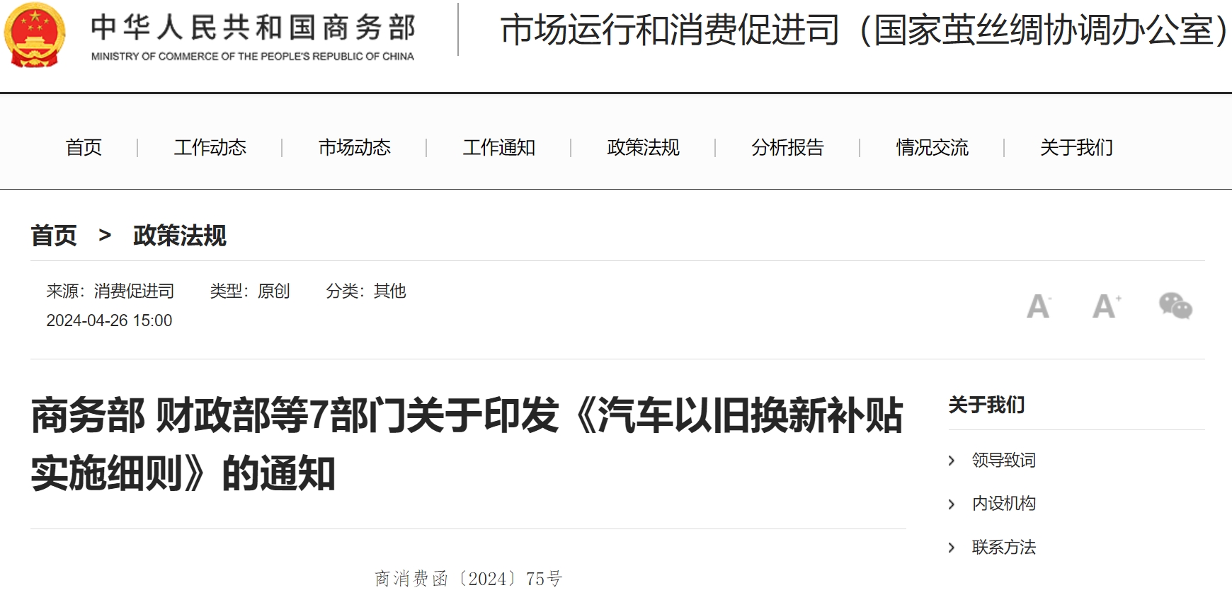 商務(wù)部財(cái)務(wù)部等7部門(mén)關(guān)于印發(fā)《汽車(chē)以舊換新補(bǔ)貼實(shí)施細(xì)則》的通知