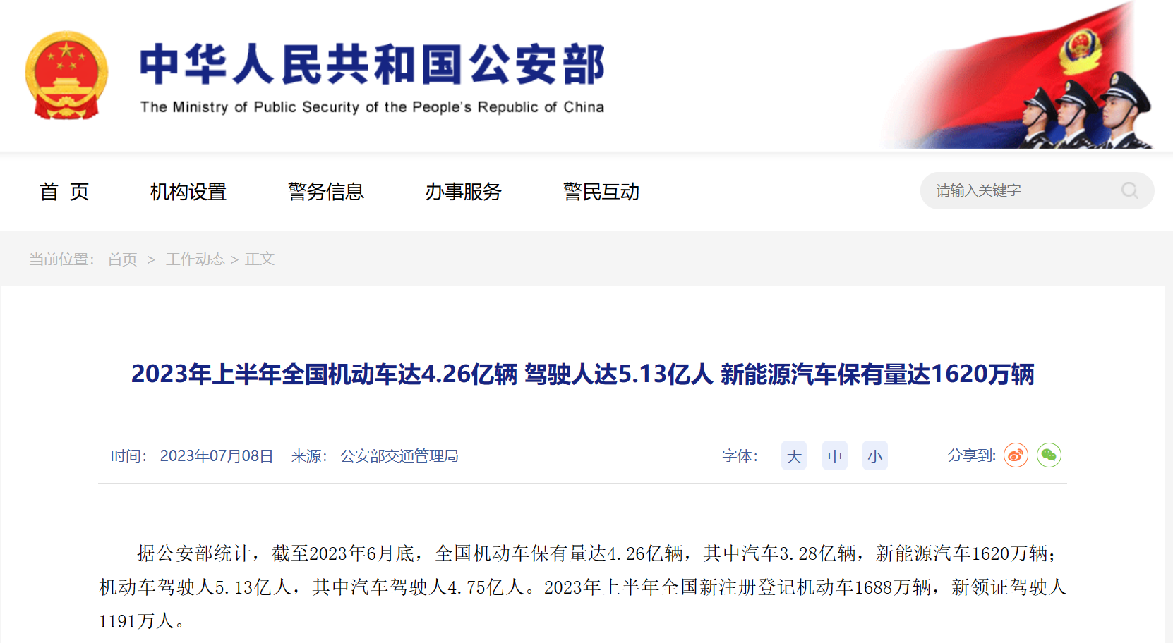 2023上半年全國(guó)機(jī)動(dòng)車保有量