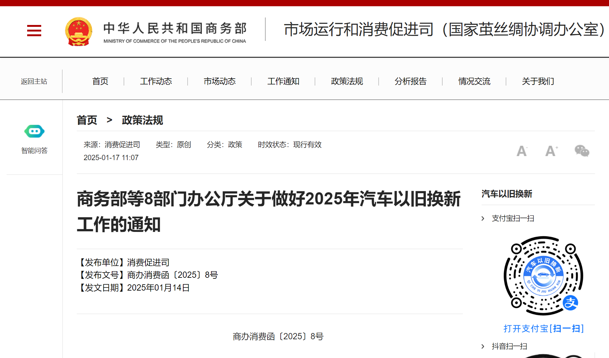 商務(wù)部等8部門(mén)辦公廳關(guān)于做好2025年汽車以舊換新工作的通知