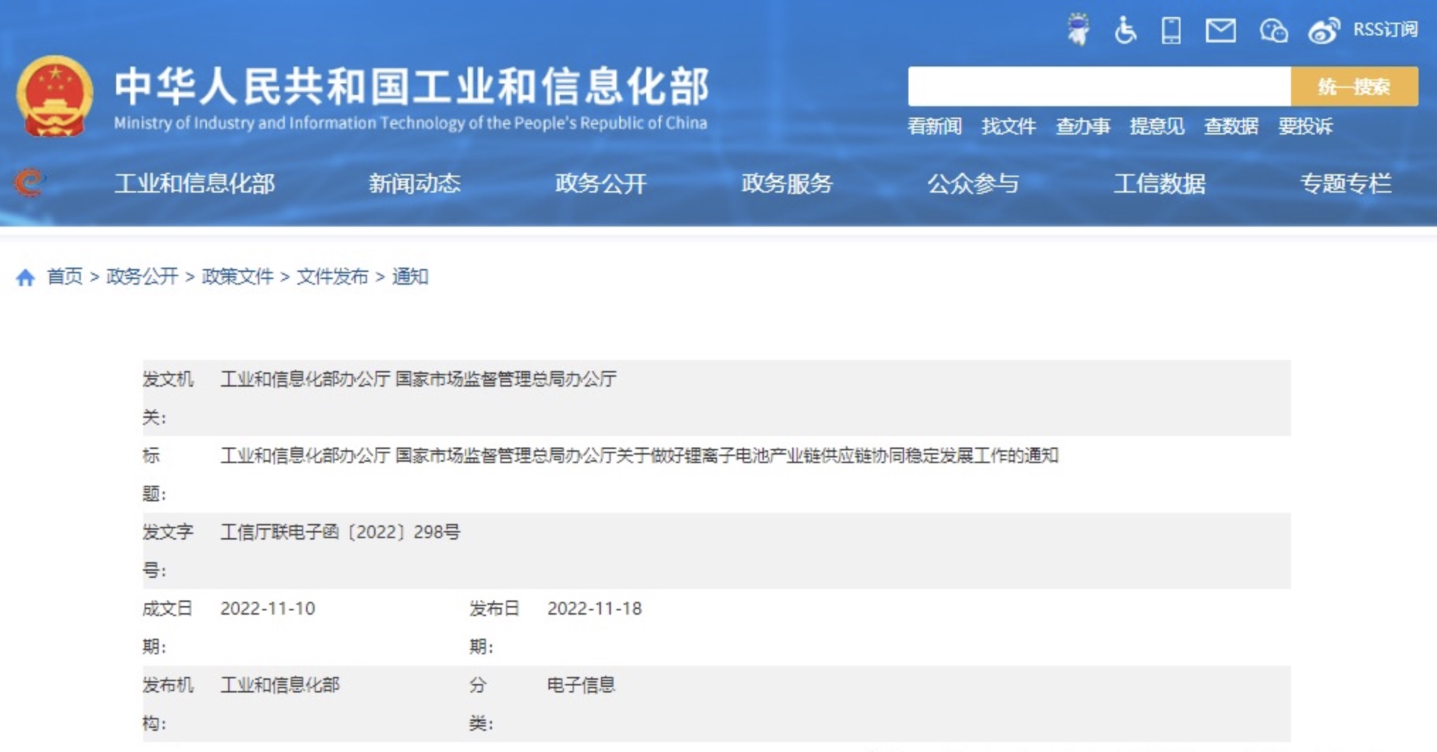 工信廳聯(lián)電子函〔2022〕298號各省、自治區(qū)、直轄市及計劃單列市、新疆生產(chǎn)建設(shè)兵團工業(yè)和信息化主管部門、市場監(jiān)管局(廳、委),各有關(guān)單位:鋰離子電池(以下簡稱...
