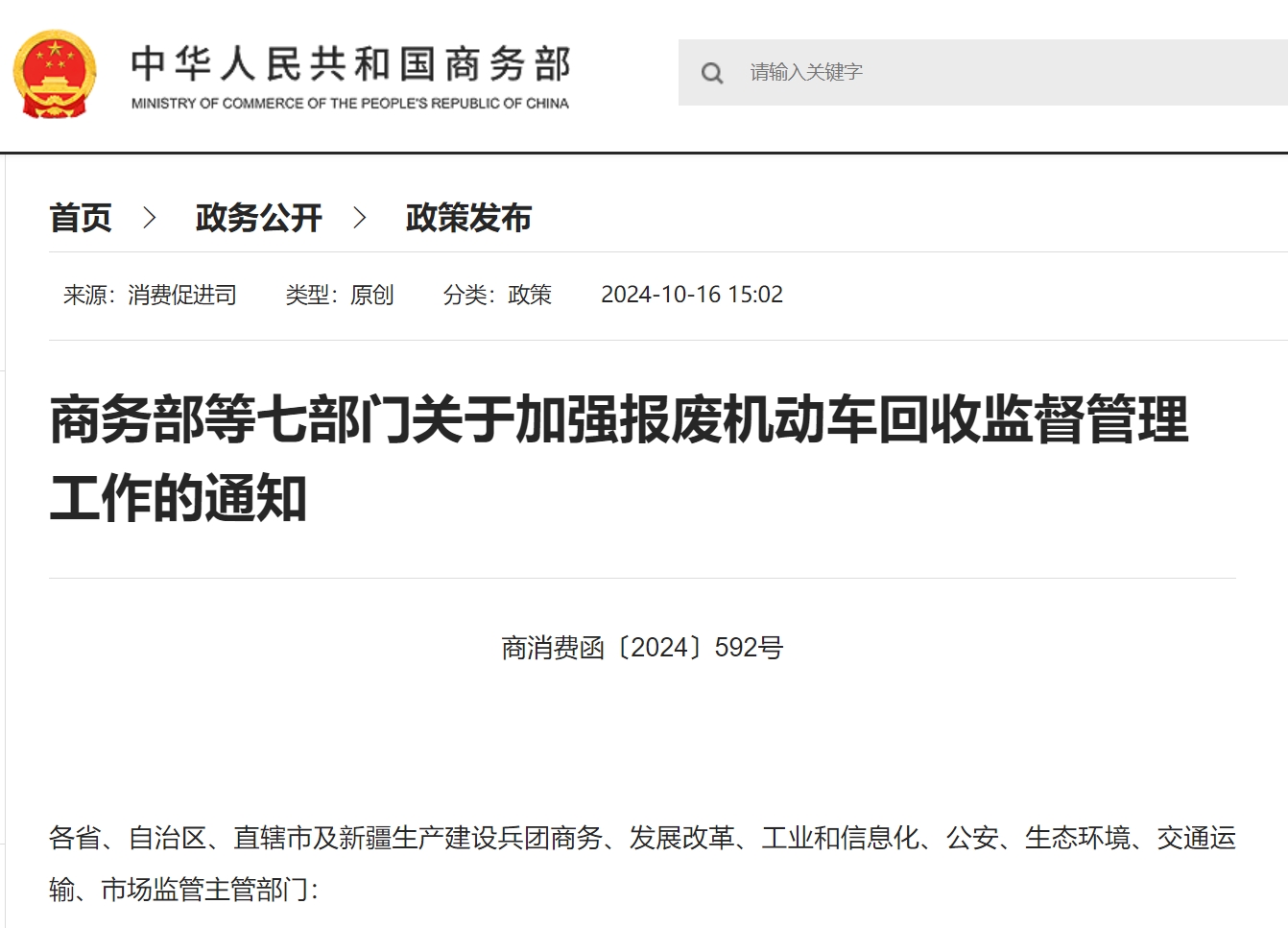 商務(wù)部等七部門:關(guān)于加強(qiáng)報廢機(jī)動車回收監(jiān)督管理工作的通知