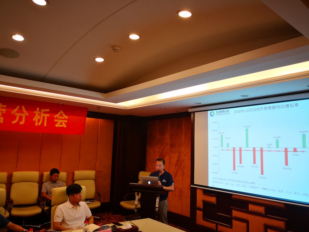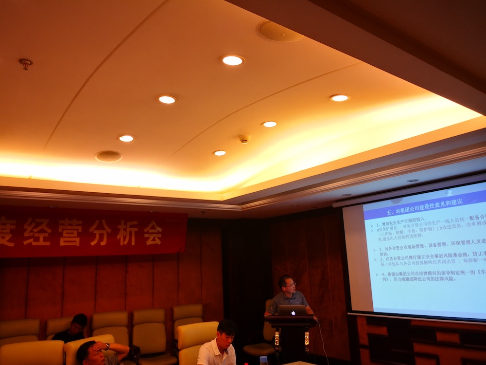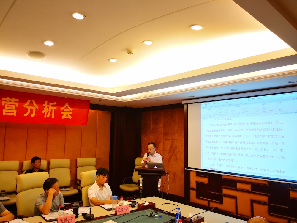 7月21-22日,玉成有限公司2018年上半年度經(jīng)營(yíng)分析會(huì)在合肥外經(jīng)戴維斯酒店召開,報(bào)廢車業(yè)務(wù)板塊合資公司董事長(zhǎng)、總經(jīng)理,集團(tuán)本部骨干員工共計(jì)近40人參加了會(huì)議,會(huì)議分別由副總裁何學(xué)海和戴子海主持。