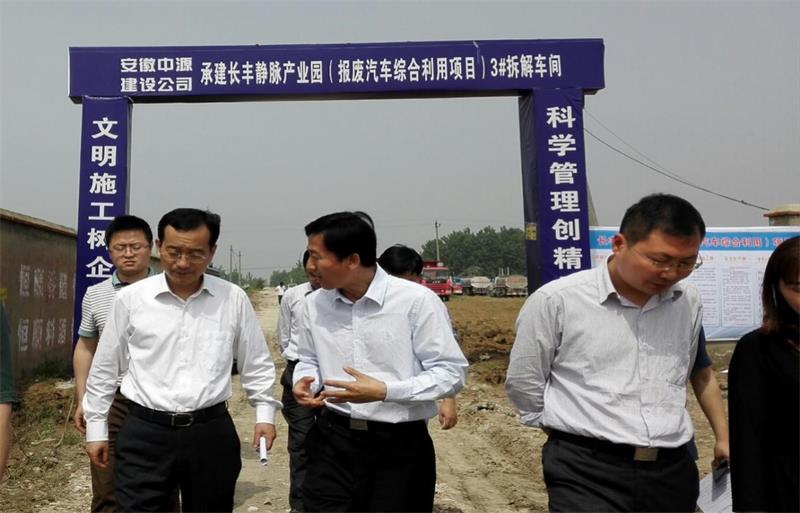 5月7日,合肥市長豐縣委書記許華在集團副總裁何學(xué)海的陪同下,深入中國玉成·合肥皖中報廢汽車回收有限責(zé)任公司調(diào)研,在實地察看了玉成有限公司投資實施運作的長豐靜脈產(chǎn)業(yè)園(報廢汽車綜合利用項目)建設(shè)工地,并認(rèn)真聽取了副總裁何學(xué)海及晥中公司相關(guān)負(fù)責(zé)人的工作匯報后,許華指出,長豐靜脈產(chǎn)業(yè)園(報廢汽車綜合利用項目)是資源回收利用、產(chǎn)業(yè)鏈延伸的亮點,具有重要示范意義,大力發(fā)展再生資源產(chǎn)業(yè),變廢為寶,開創(chuàng)了資源節(jié)約的可行路徑,激發(fā)了經(jīng)濟增長的持續(xù)動力,要求項目建設(shè)單位要加快建設(shè)速度,推動項目順利建成投產(chǎn)。