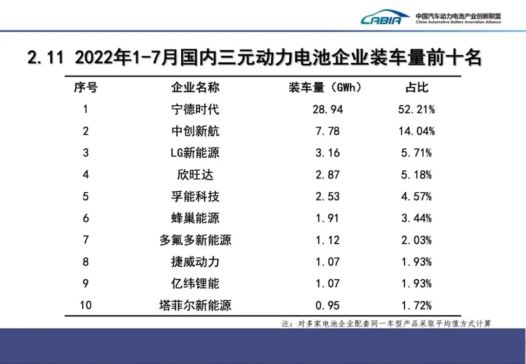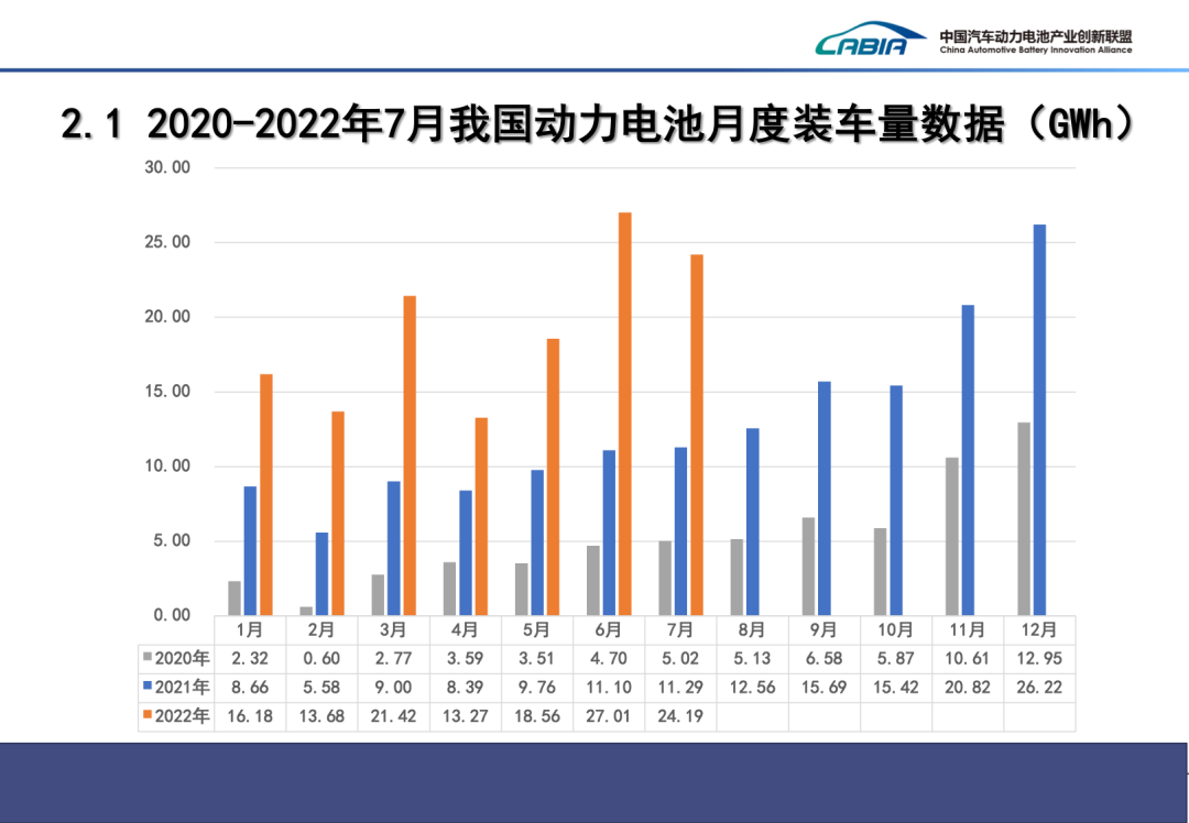 2022年7月動(dòng)力電池月度數(shù)據(jù)發(fā)布如下。